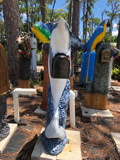 Blue Dolphin Mailbox Sculpture – Nautical Mailbox